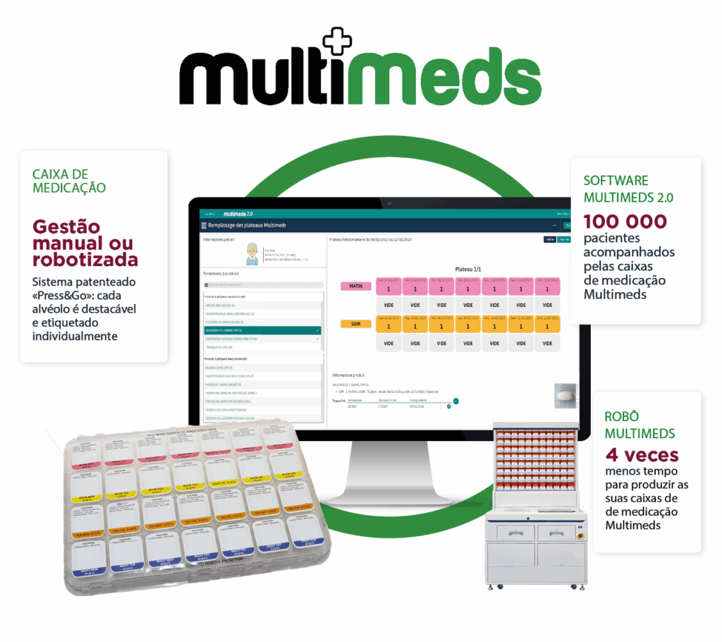 Através do software de gestão da medicação, do sistema de blisters e, se necessário, de um robot de dispensação em dose unitária, a Multimeds disponibiliza aos profissionais de saúde os instrumentos adequados para apoiar os seus doentes.